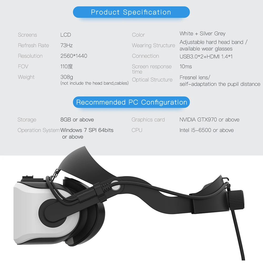 Response time 10ms, short latency prevents dizziness and brings you more immersive experience in the virtual world. Refresh rate at 73Hz, can protect user's eyes better.