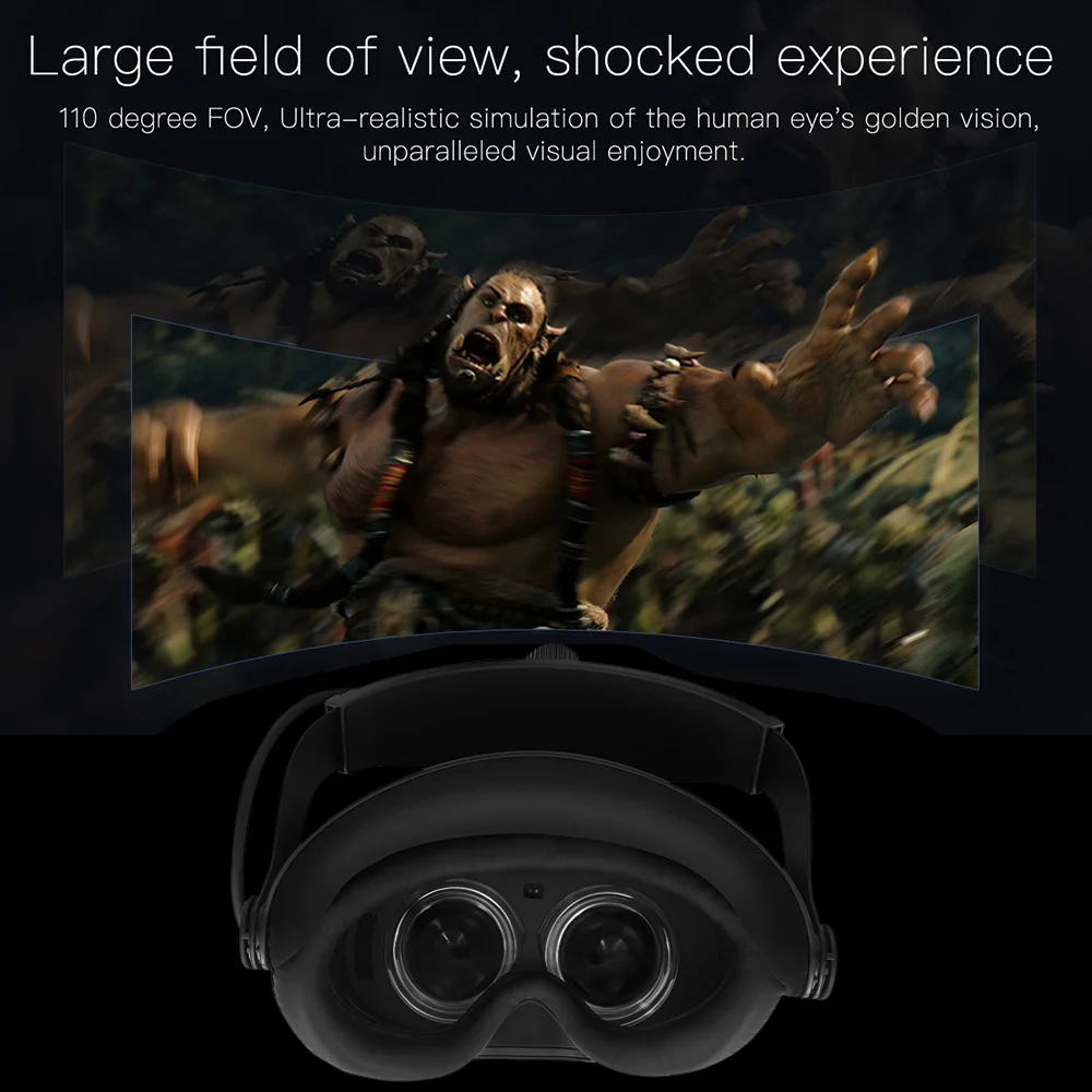110 degree FOV, ultra-realistic simulation of the human eye's golden vision, providing unparalleled visual enjoyment. Advanced LCD screen, soft light for eyes protection.