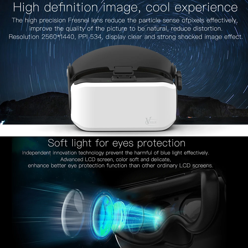 Resolution 2560*1440, PP1 534, displays clear and strong shocked image effect. The high precision Fresnel lens improve the picture quality and reduce distortion.